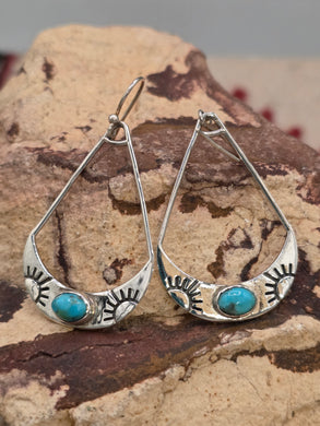 KINGMAN TURQUOISE EARRINGS WITH SUN RAY DESIGN