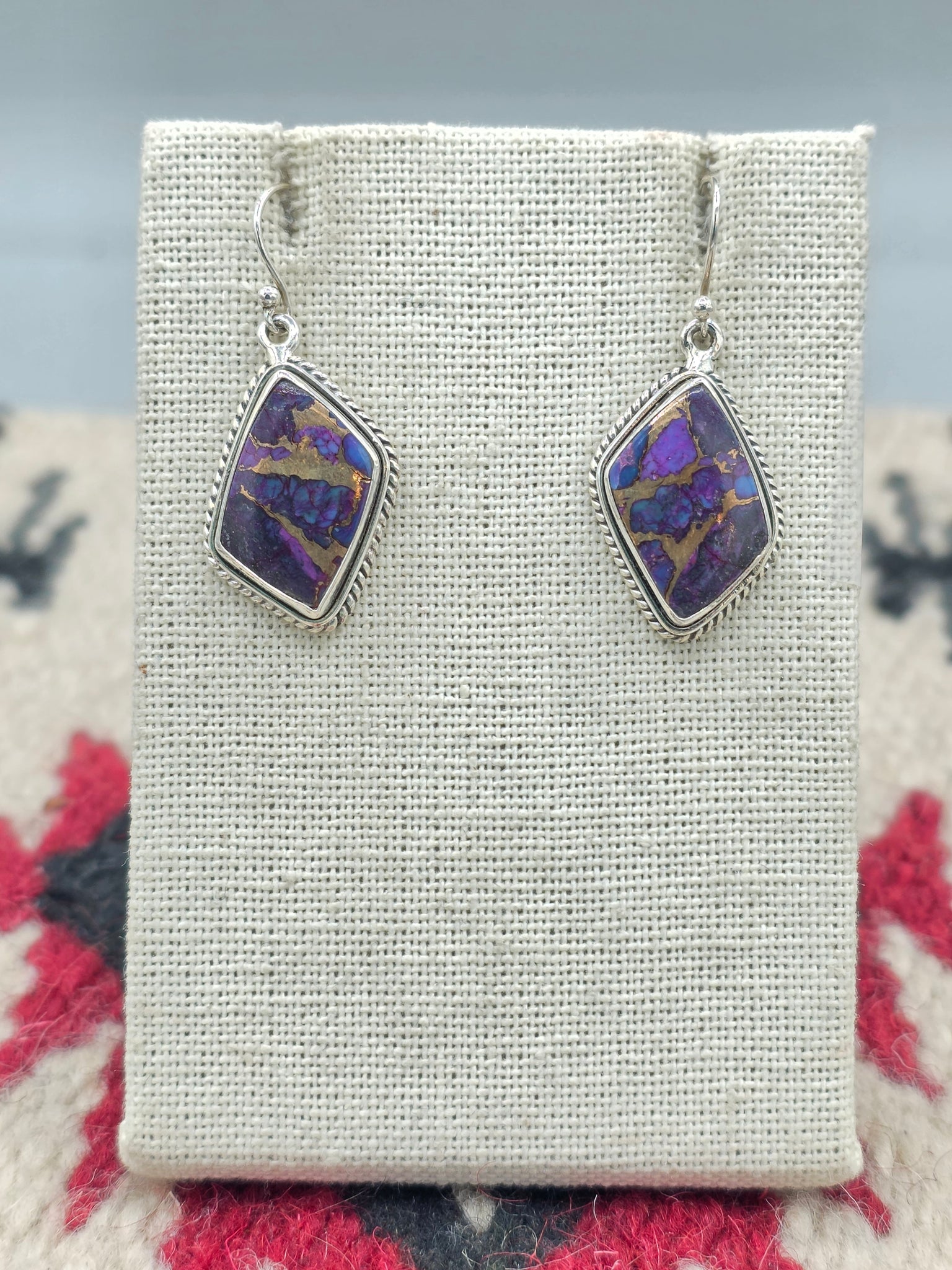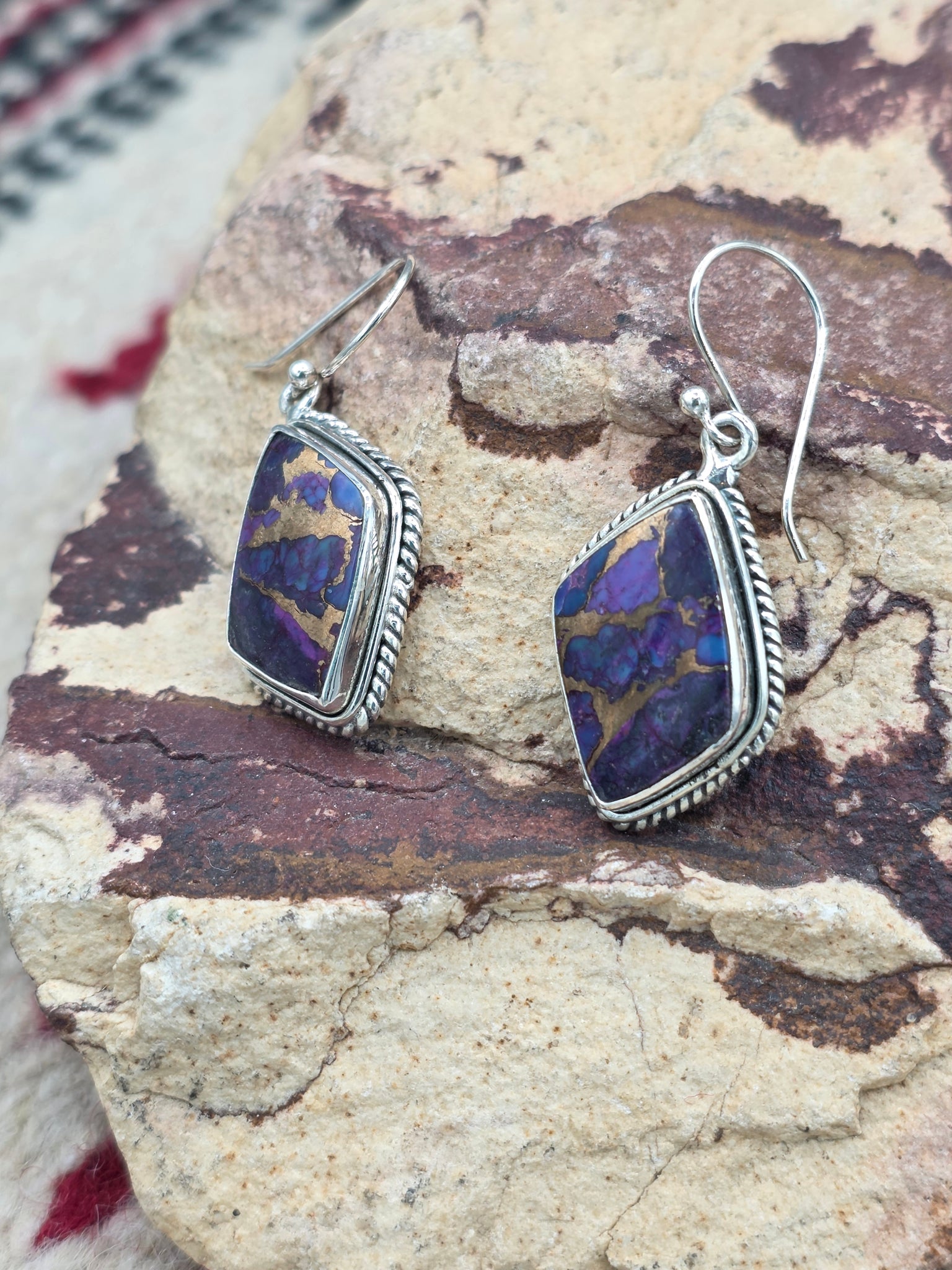 Purple Copper Turquoise Earrings set in Sterling Silver. Approximately 40 mm long x 16 mm wide