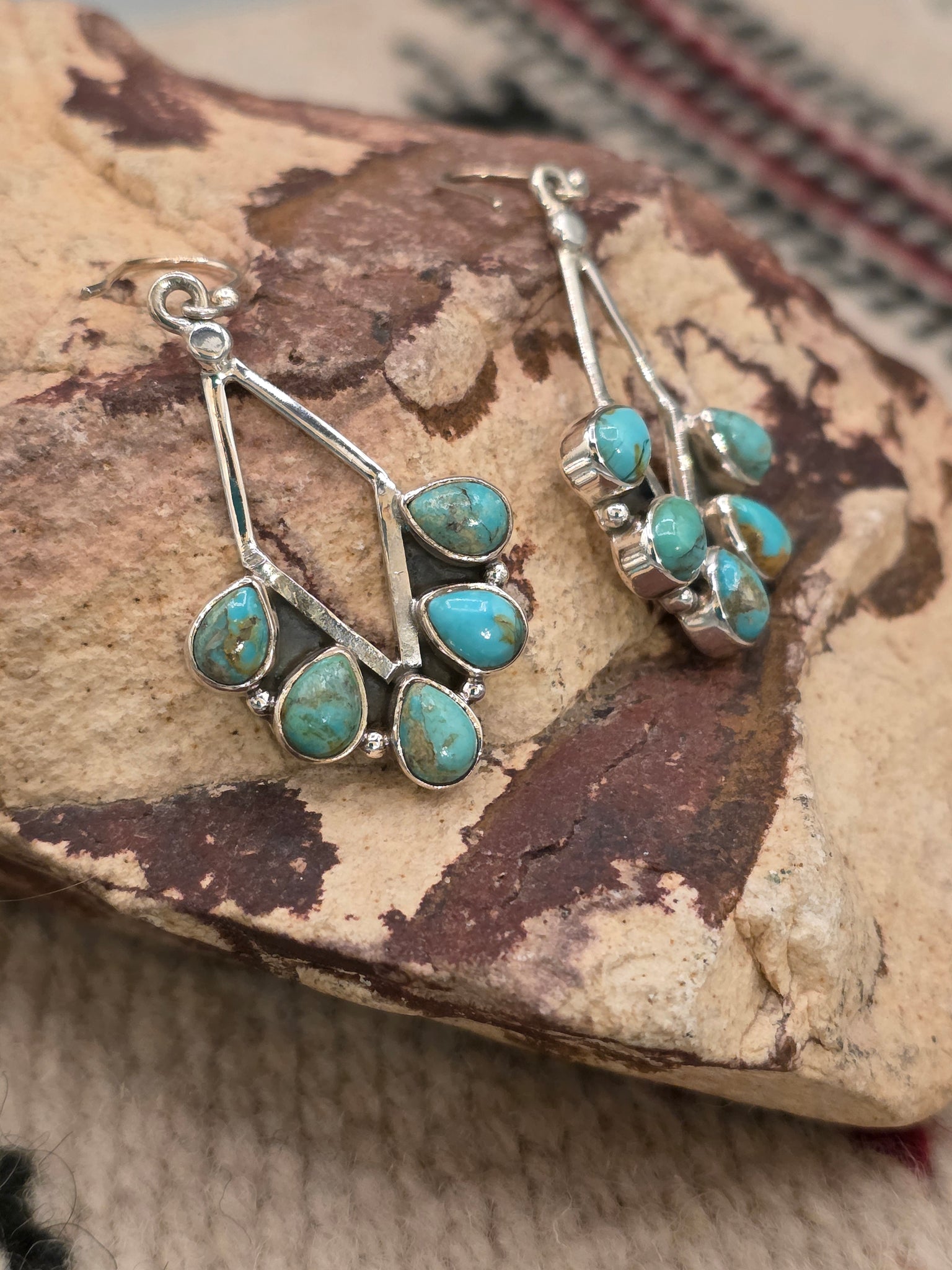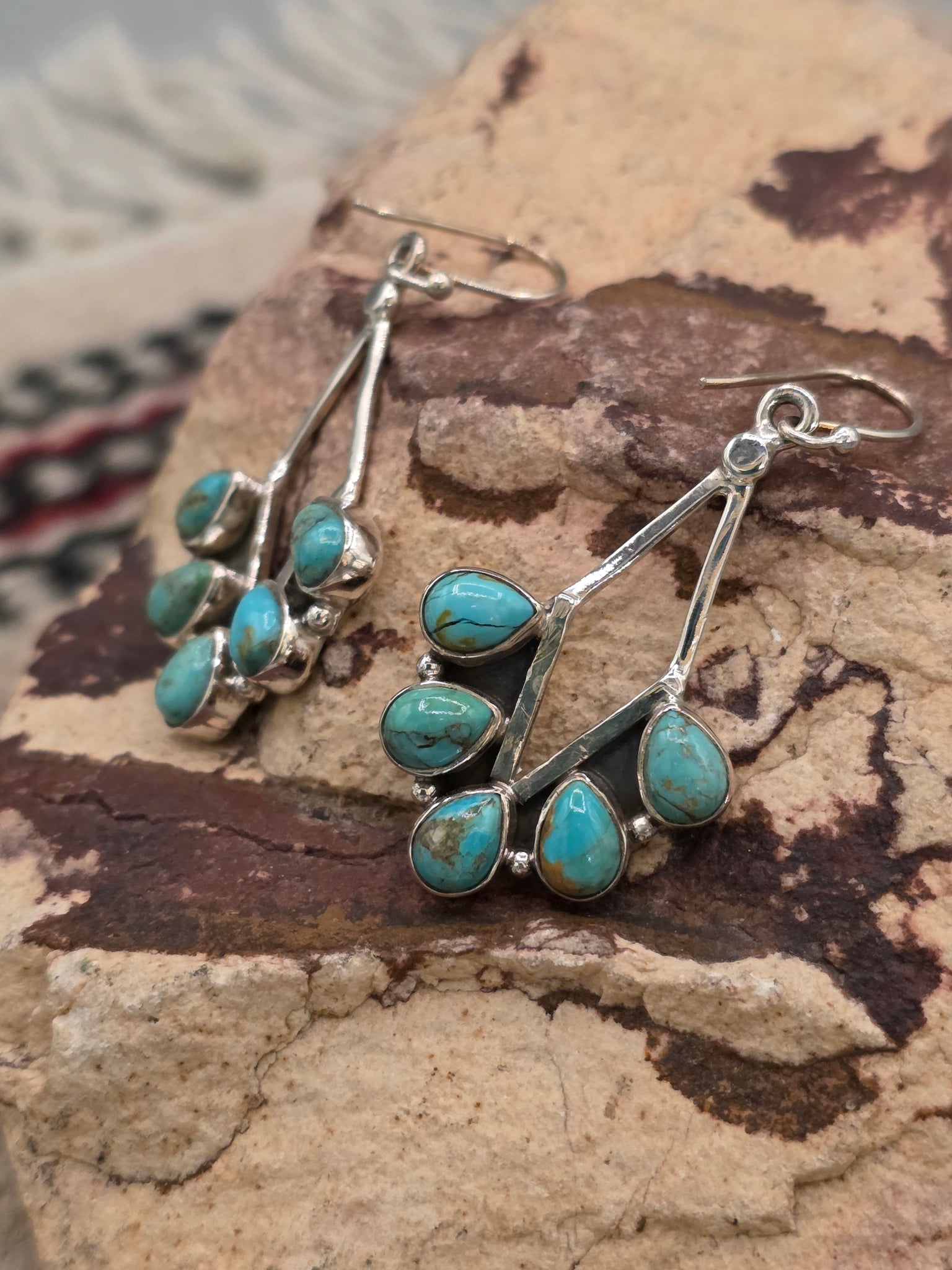 Sterling Silver KINGMAN Turquoise 4 Stone Earrings.