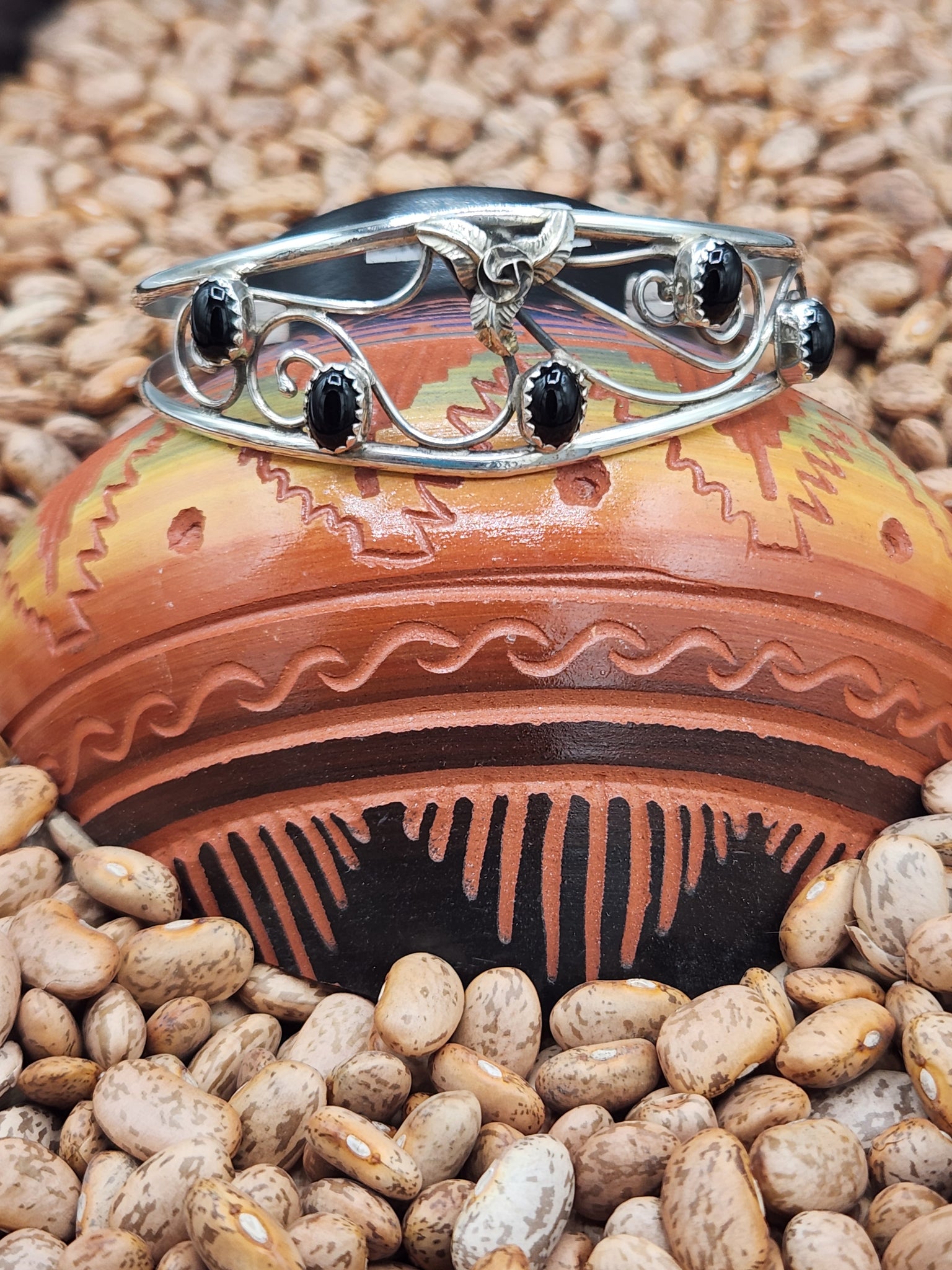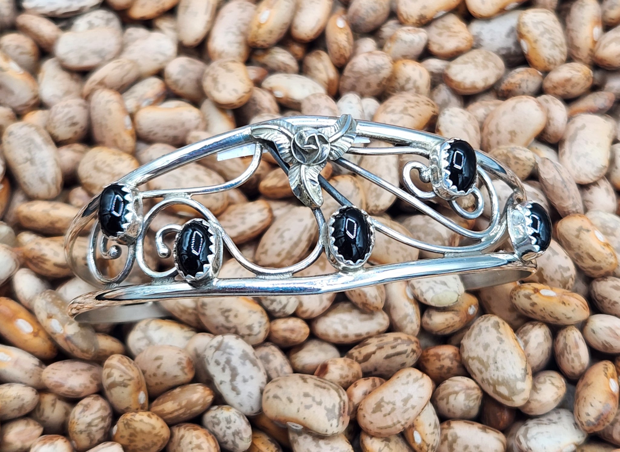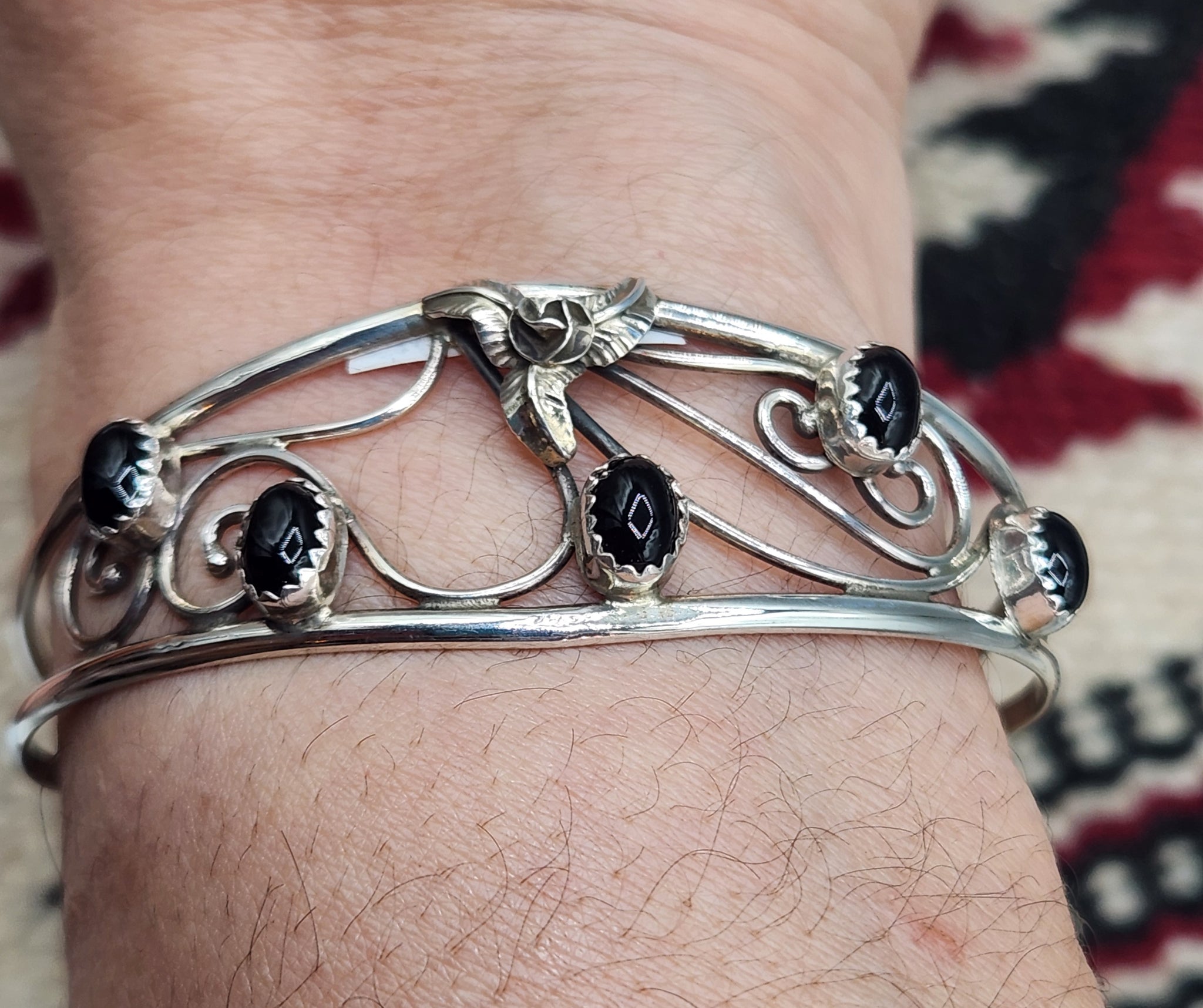 Beautiful 5 Stone Onyx Cuff Style Bracelet setvin Sterling Silver.  Navajo HANDCRAFTED by Max Caladitto.