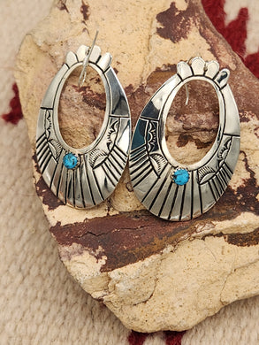 TURQUOISE INLAY ZUNI OPEN HOOP EARRINGS - JOANN PEINA