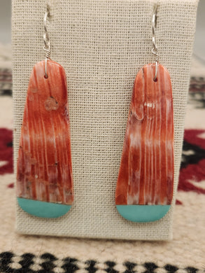 SPINY OYSTER & TURQUOISE PADDLE STYLE EARRINGS