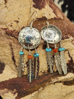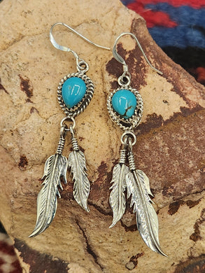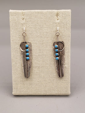 EXTRA LONG OVERLAY FEATHER EARRINGS WITH TURQUOISE- TOMMY & ROSITA SINGER