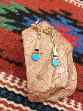 TURQUOISE INLAY EARRINGS - ZUNI - DRENA LEEKYA