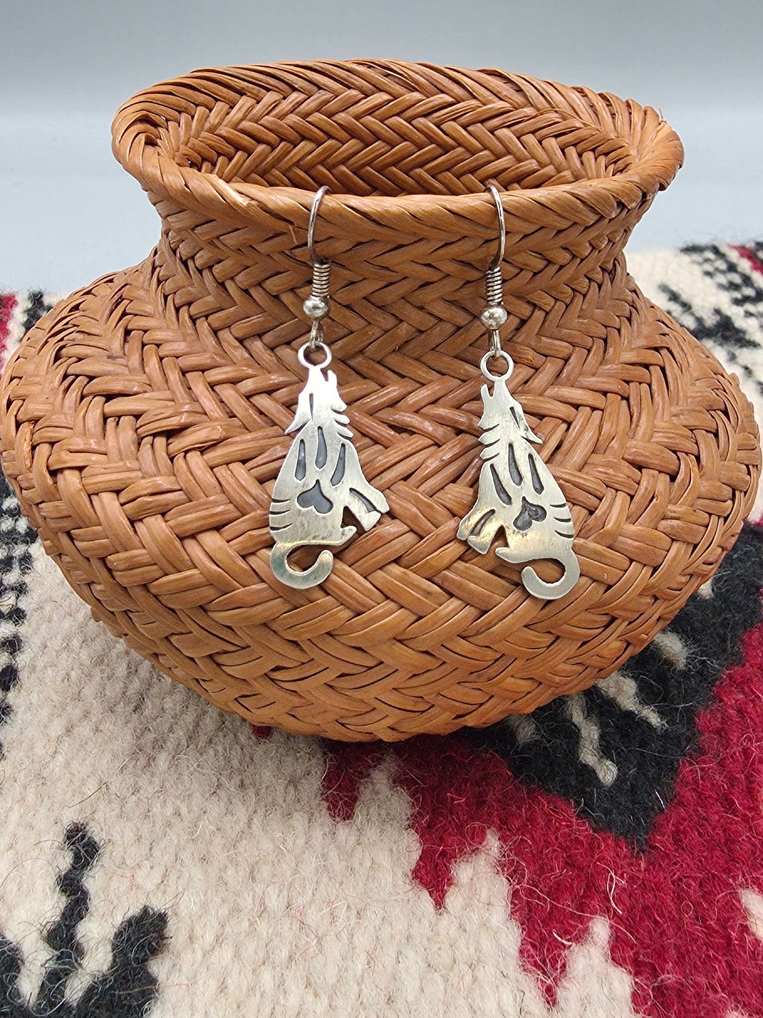 These beautiful Sterling Silver Overlay Wolf Earrings are handcrafted by Hopi Artist Danielle Wadsworth.