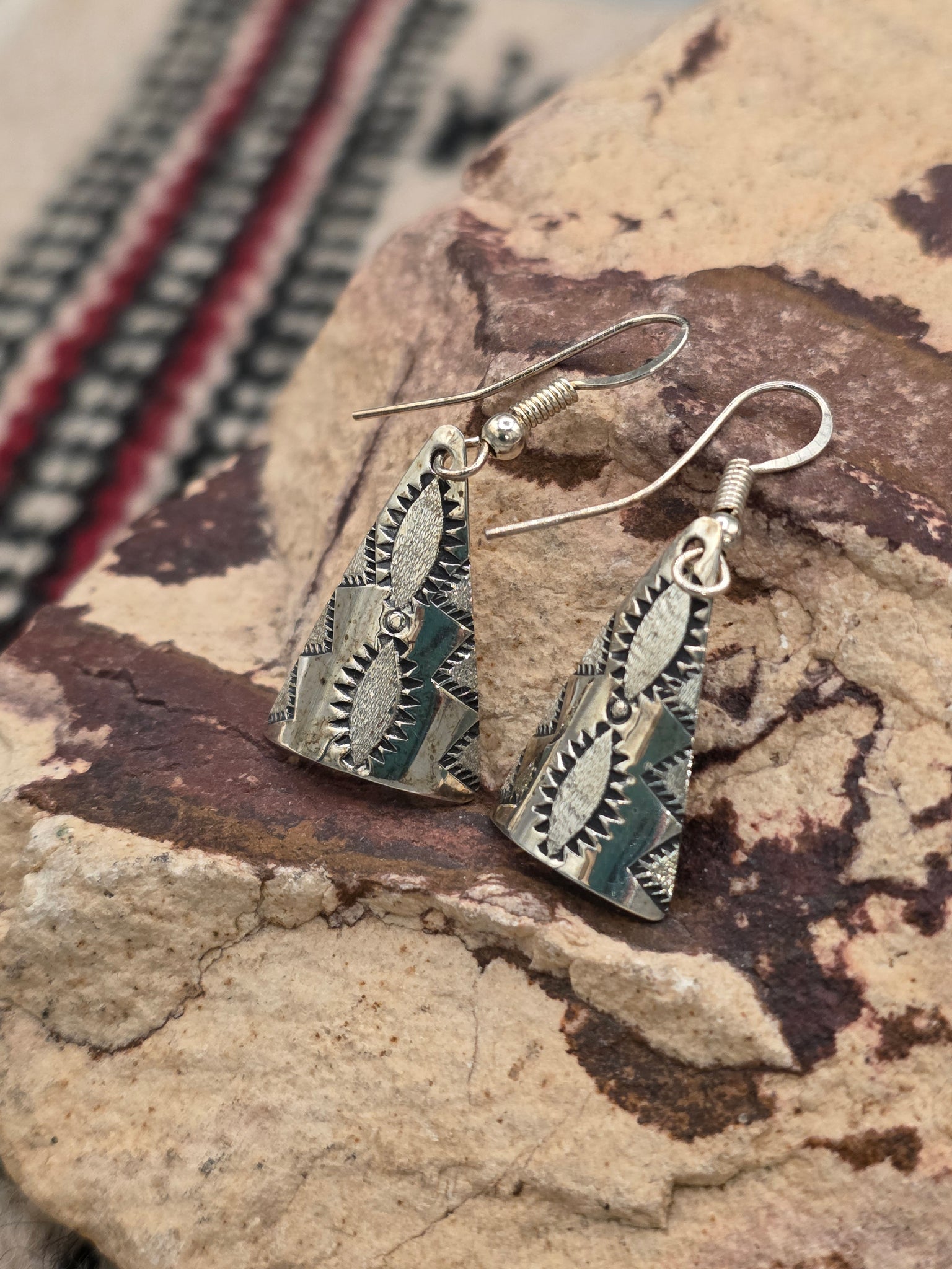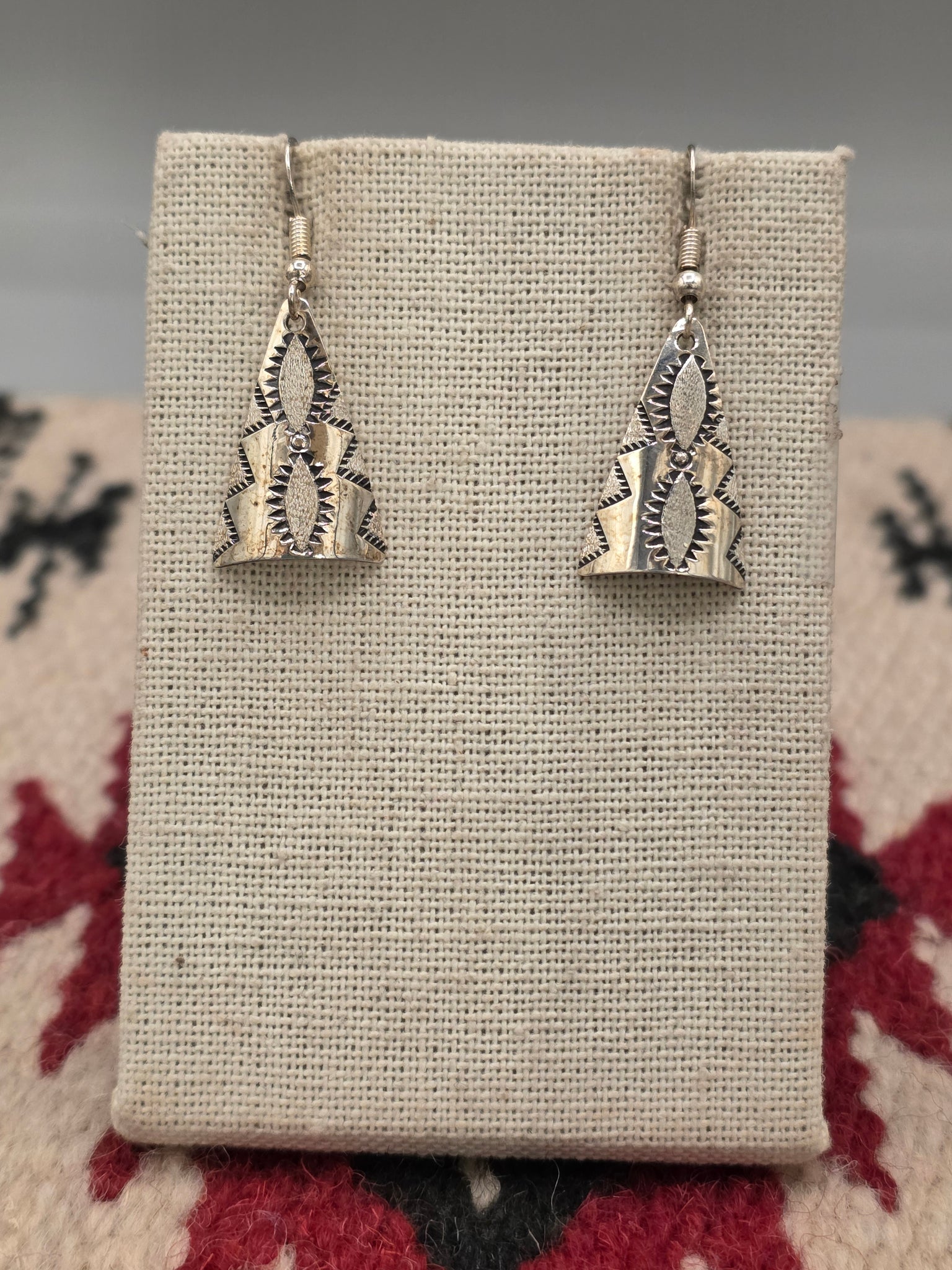 Sterling Silver Stamped Triangle Shaped Earrings. Navajo Handcrafted by Kenneth Largo.
