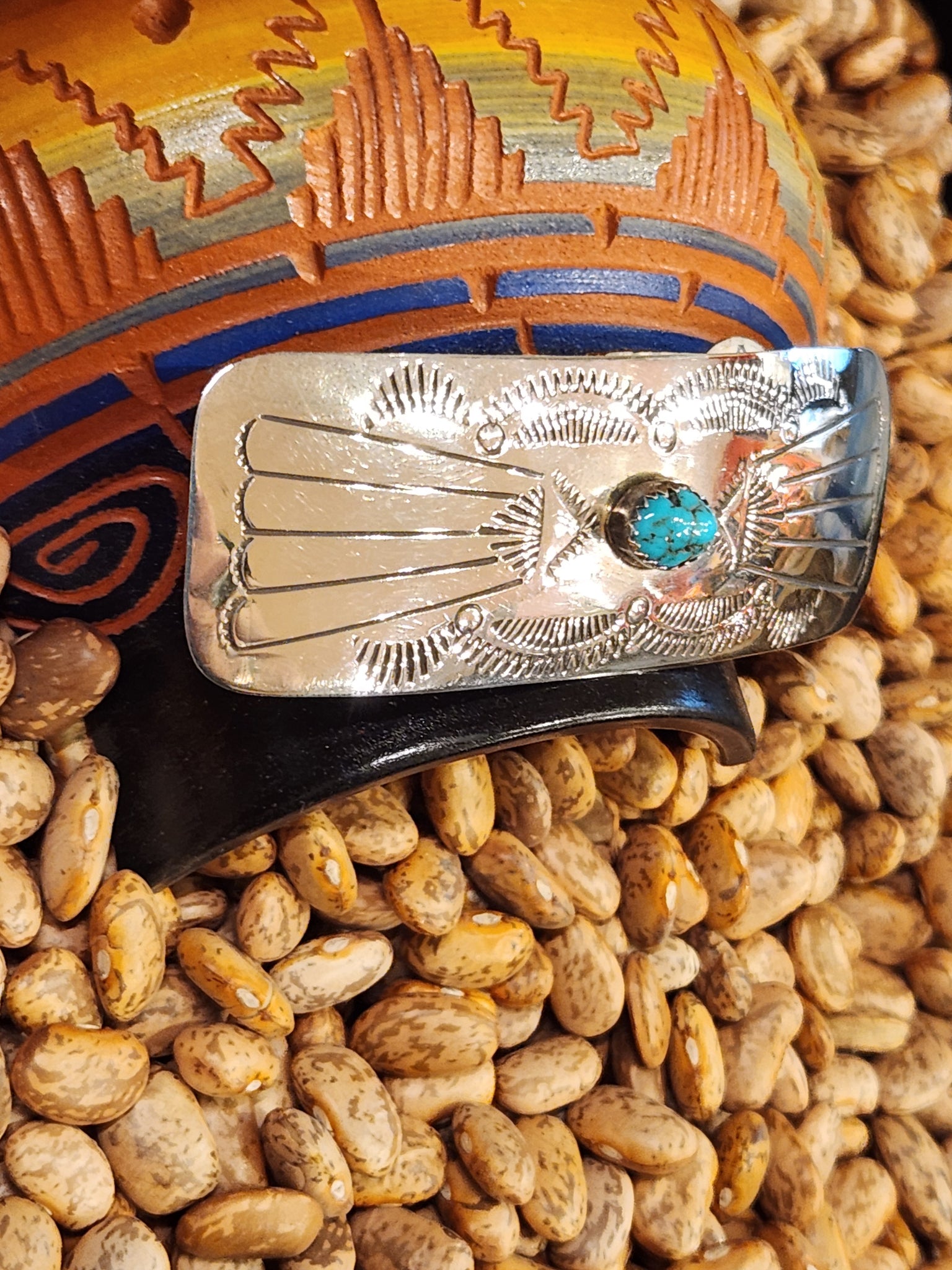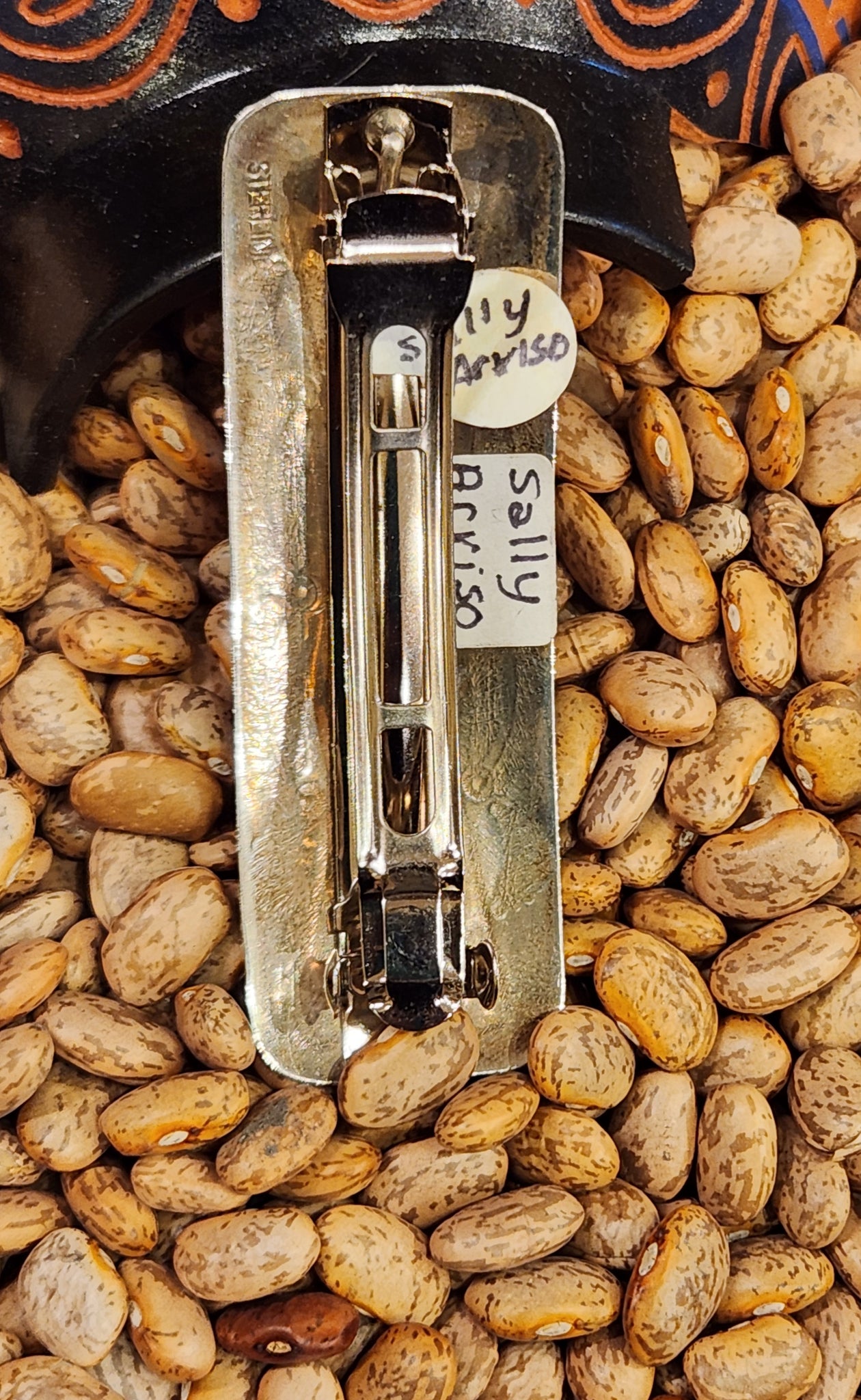 Large Sterling Silver & Turquoise Etched Hair Barrette with Spring Clip. Navajo Handcrafted by Sally Arviso.