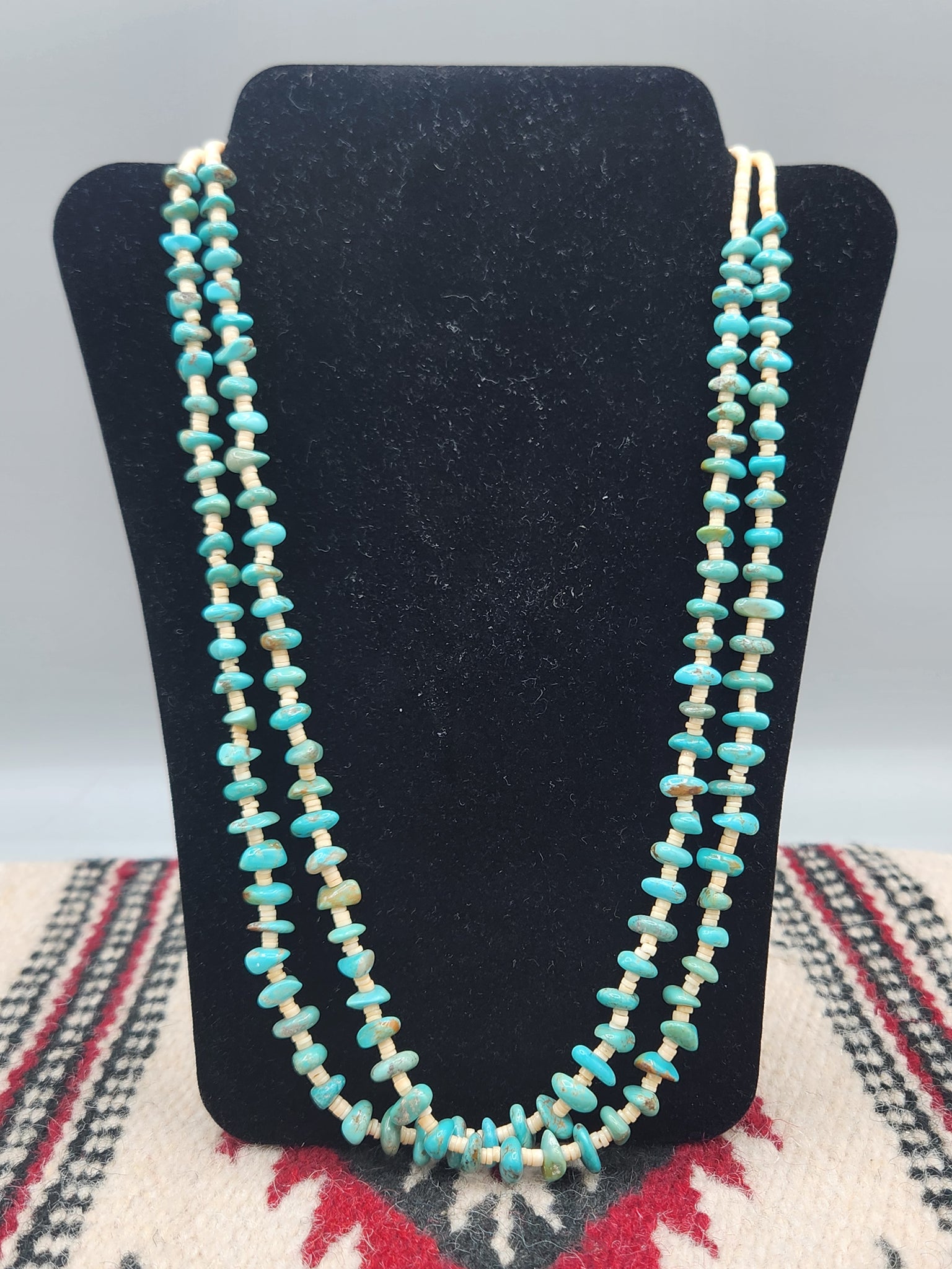 Beautiful 2 Strand Turquoise & Shell Necklace featuring Blue Moon NV Turquoise.