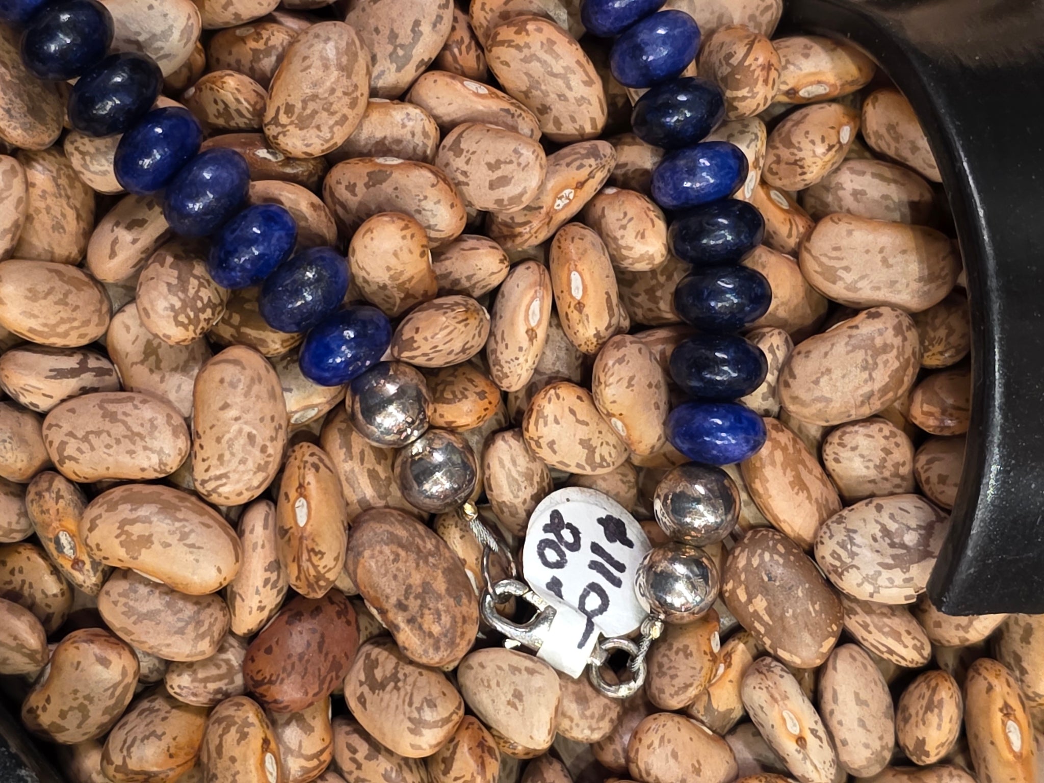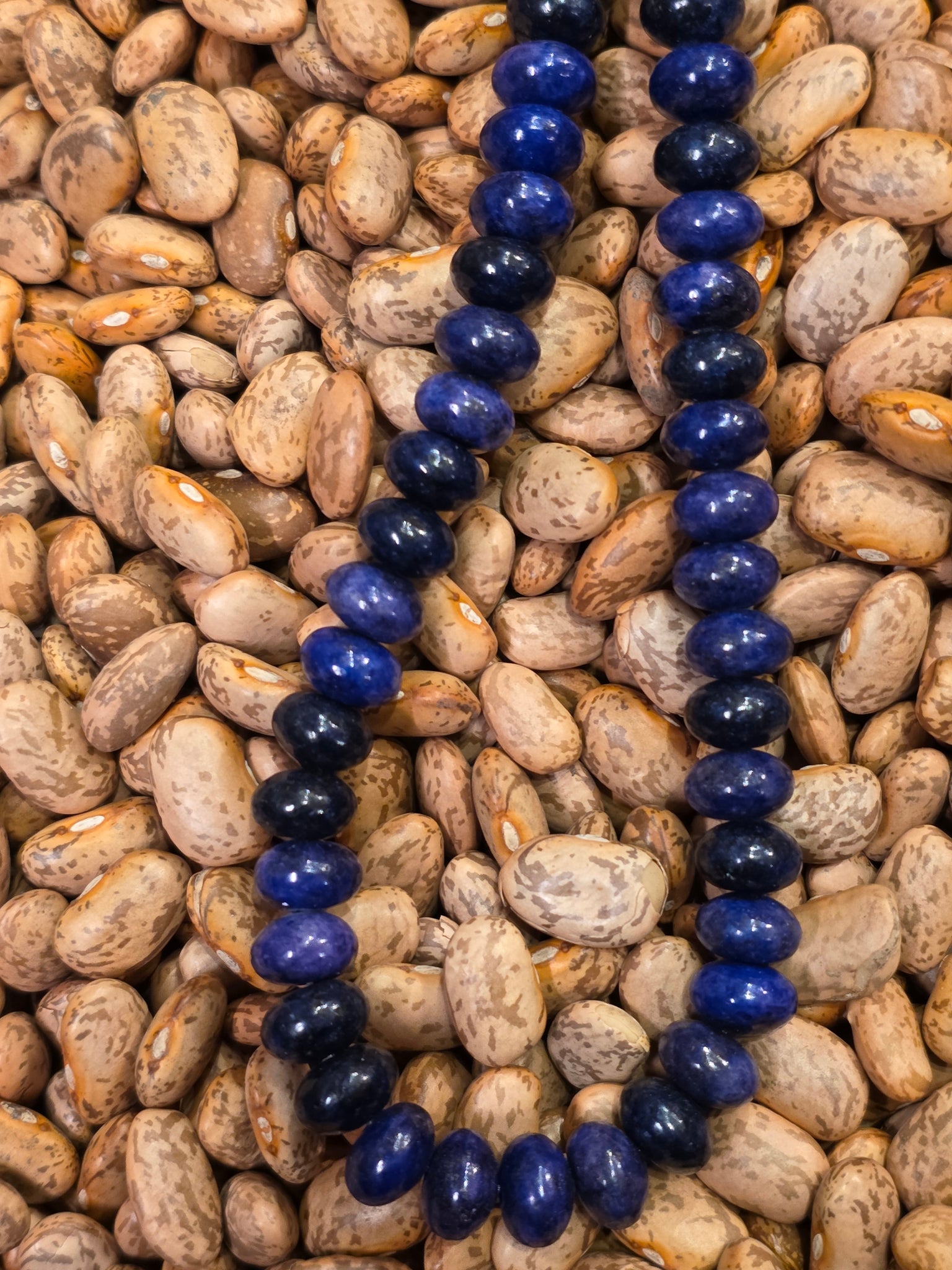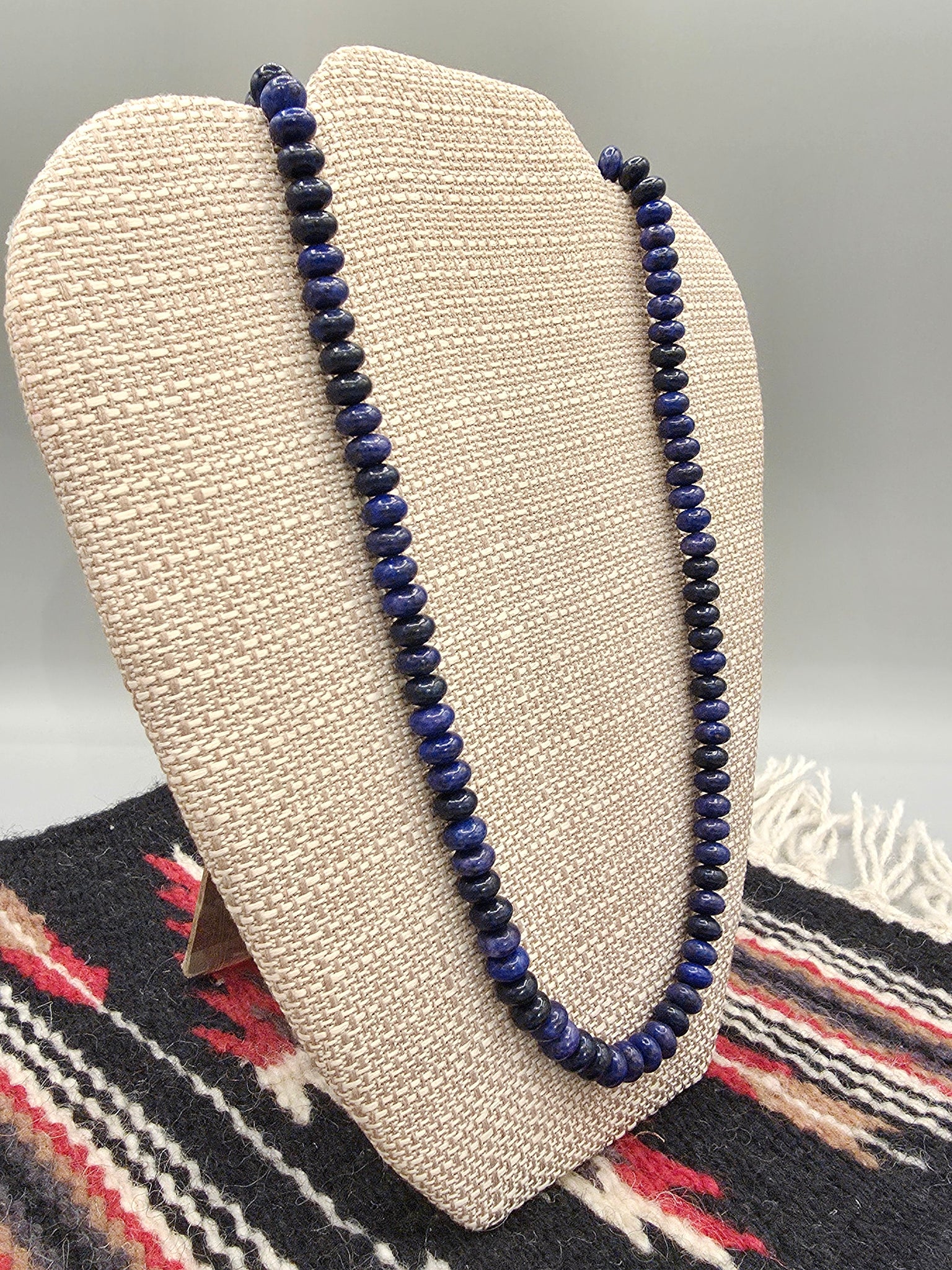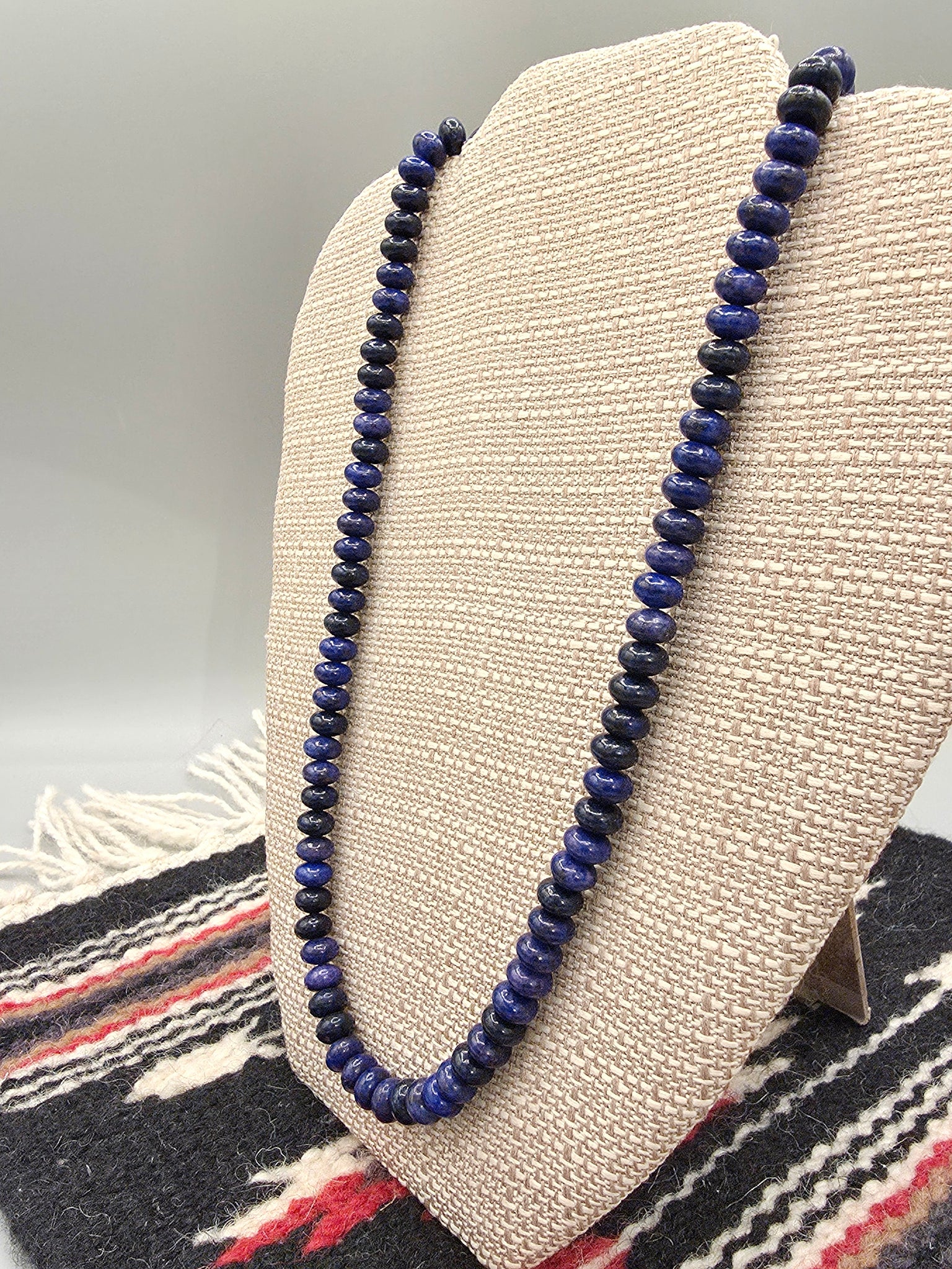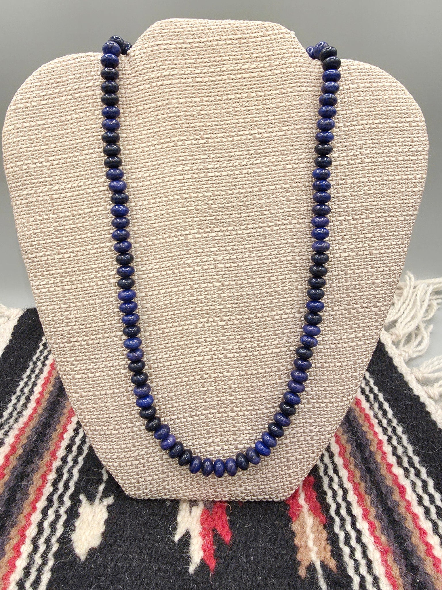 Beautiful 8mm Rondelle Beaded Lapis Lazuli Necklace with Sterling Silver Beaded Ends. 20" long
