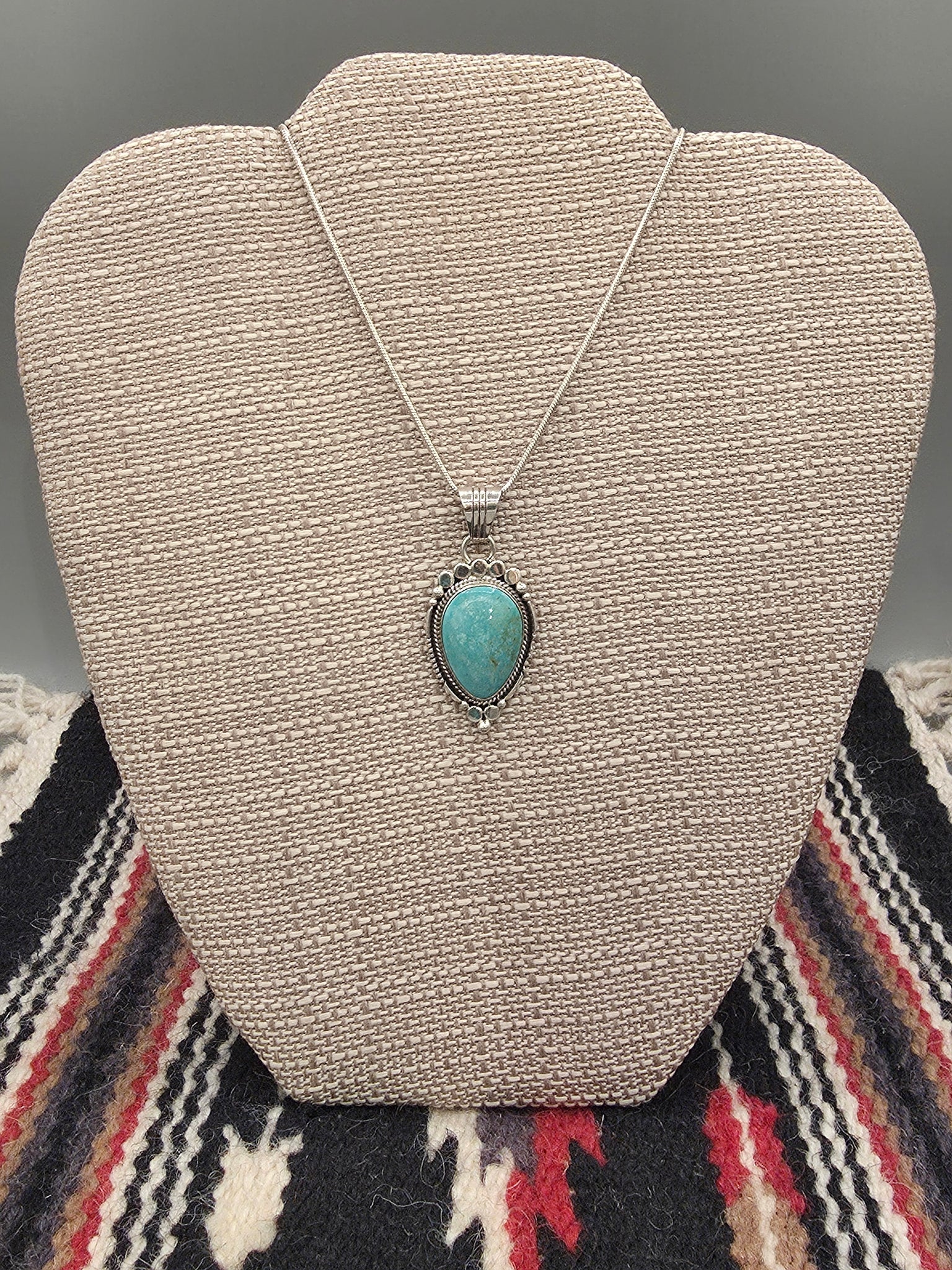 Sterling Silver reverse Teardrop Shaped Turquoise Pendant. Navajo Handcrafted by Marita Benally.