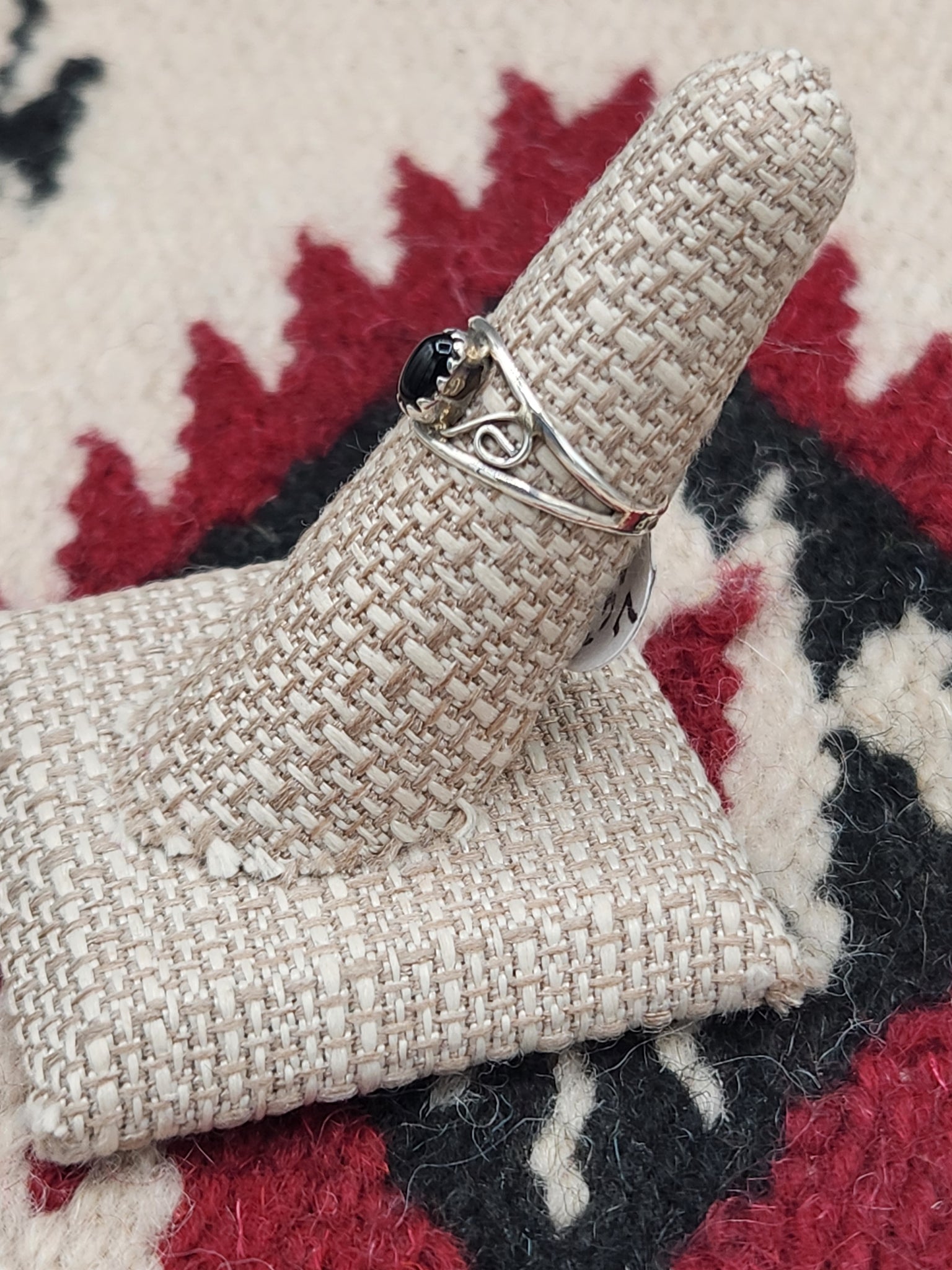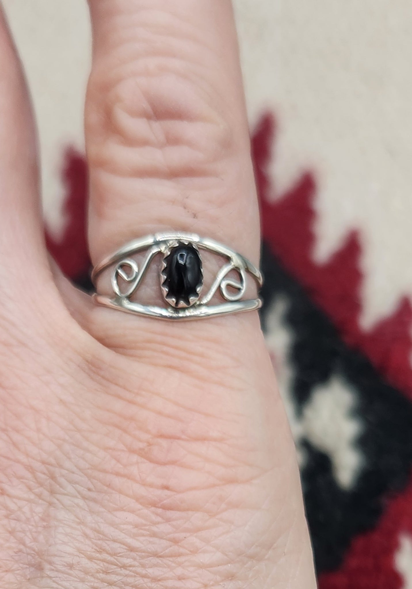 Small, Delicate Sterling Silver Onyx Ring. Navajo HANDCRAFTED by Judy Lincoln.