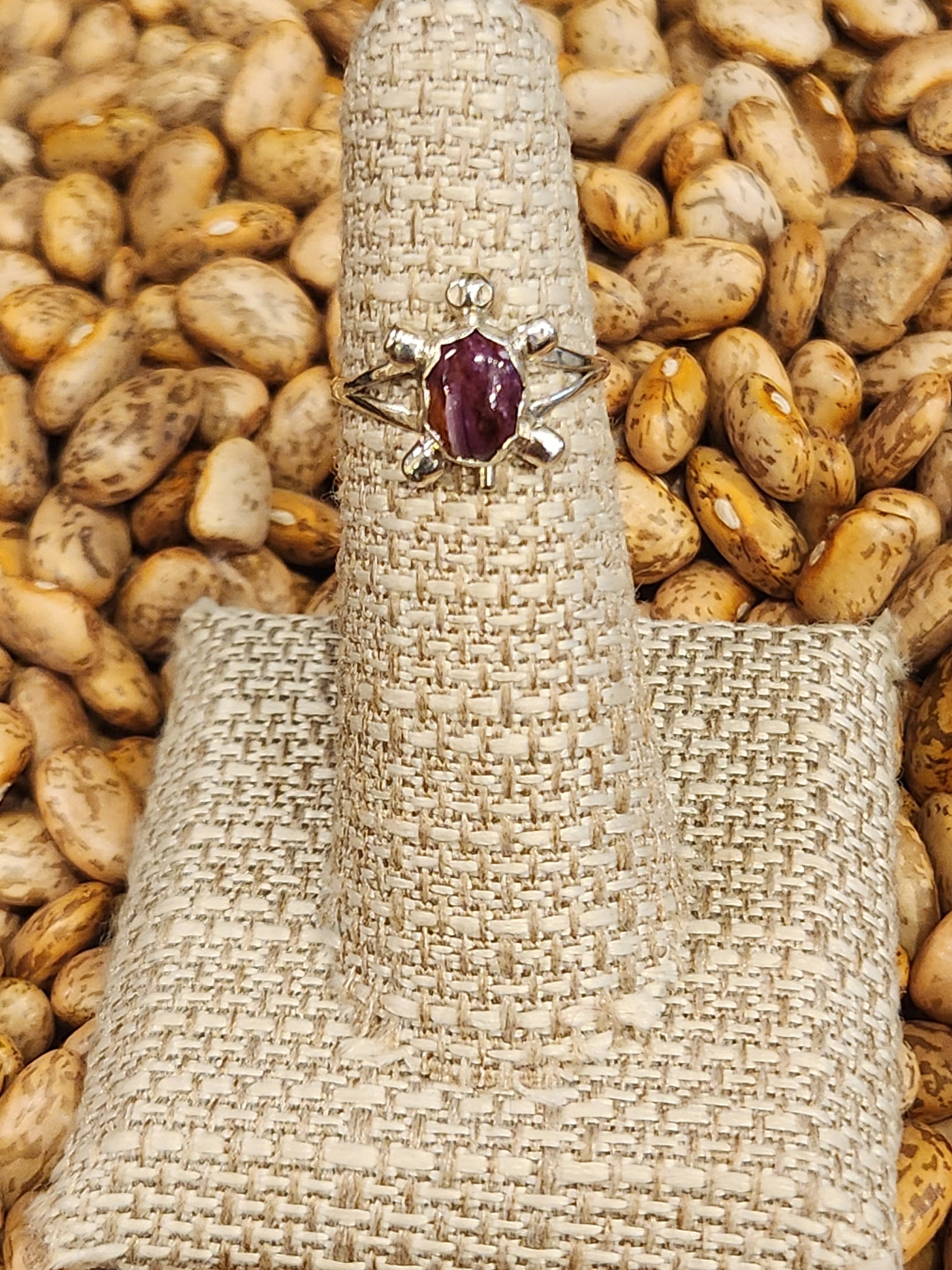 Delicate Sterling Silver Purple Spiny Oyster Shell Turtle Ring. Available in sizes 5.5 - 7 - 8.5