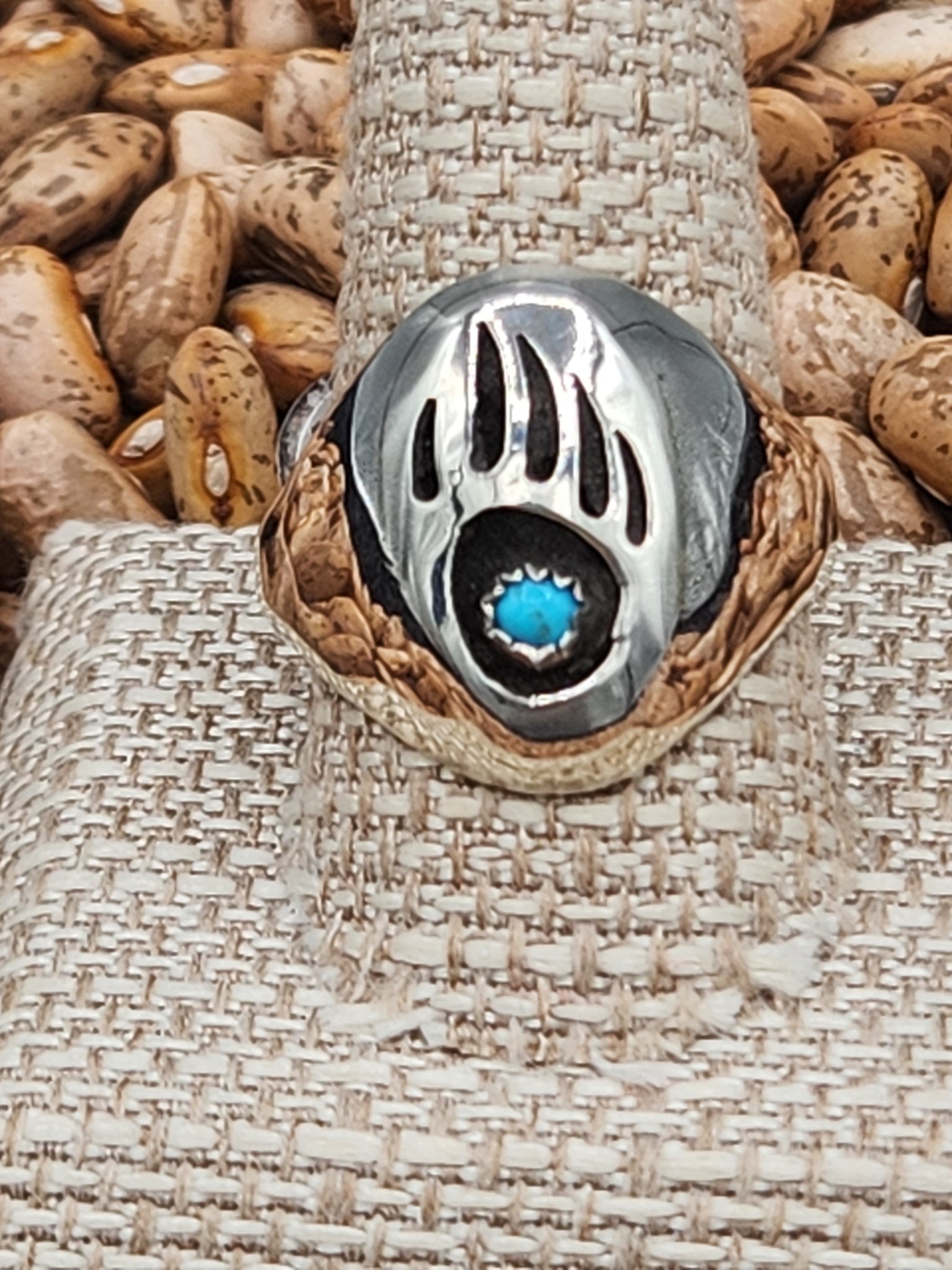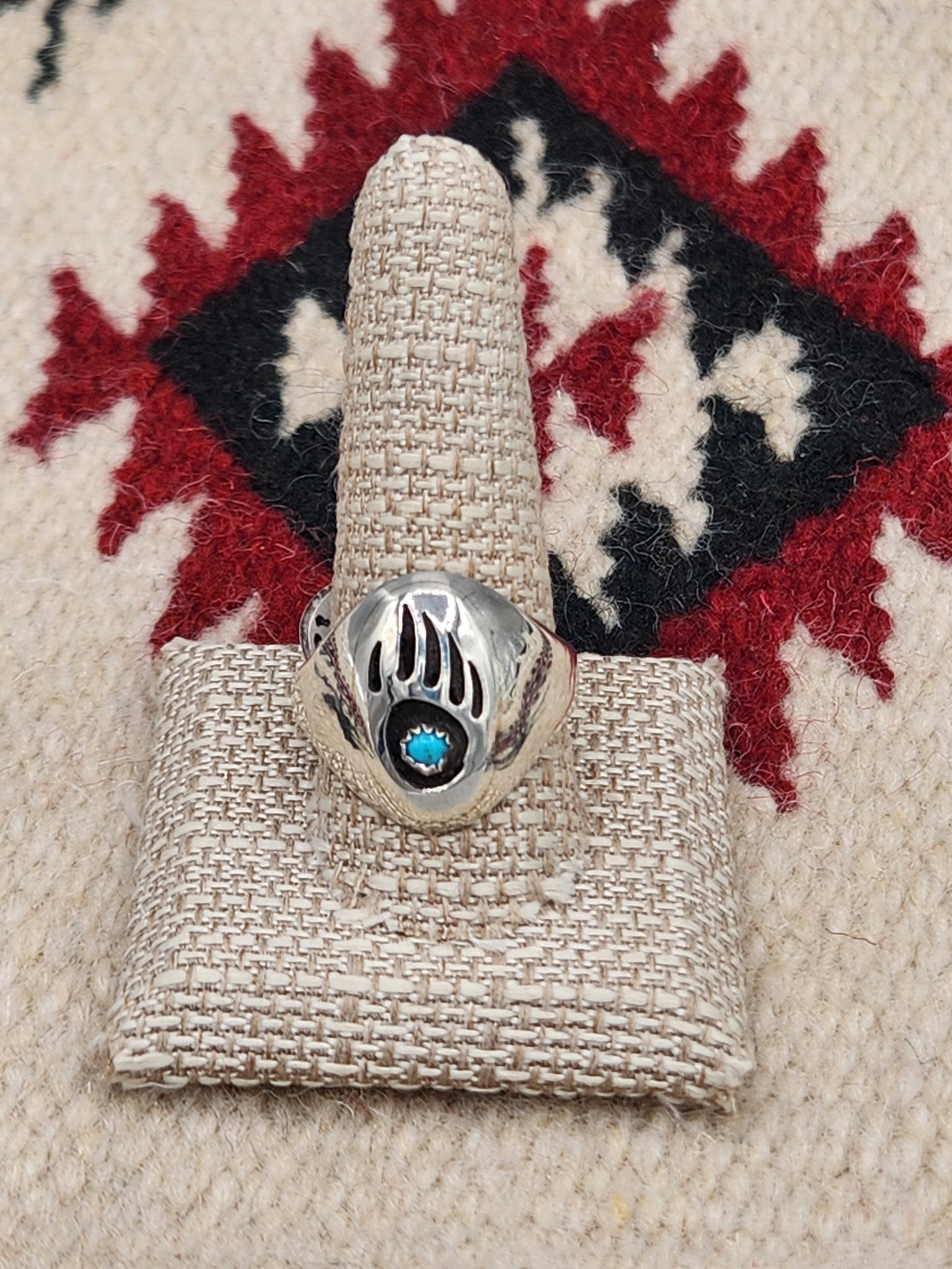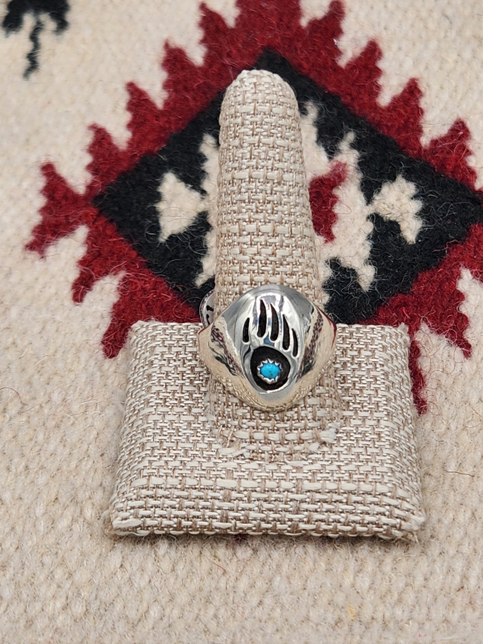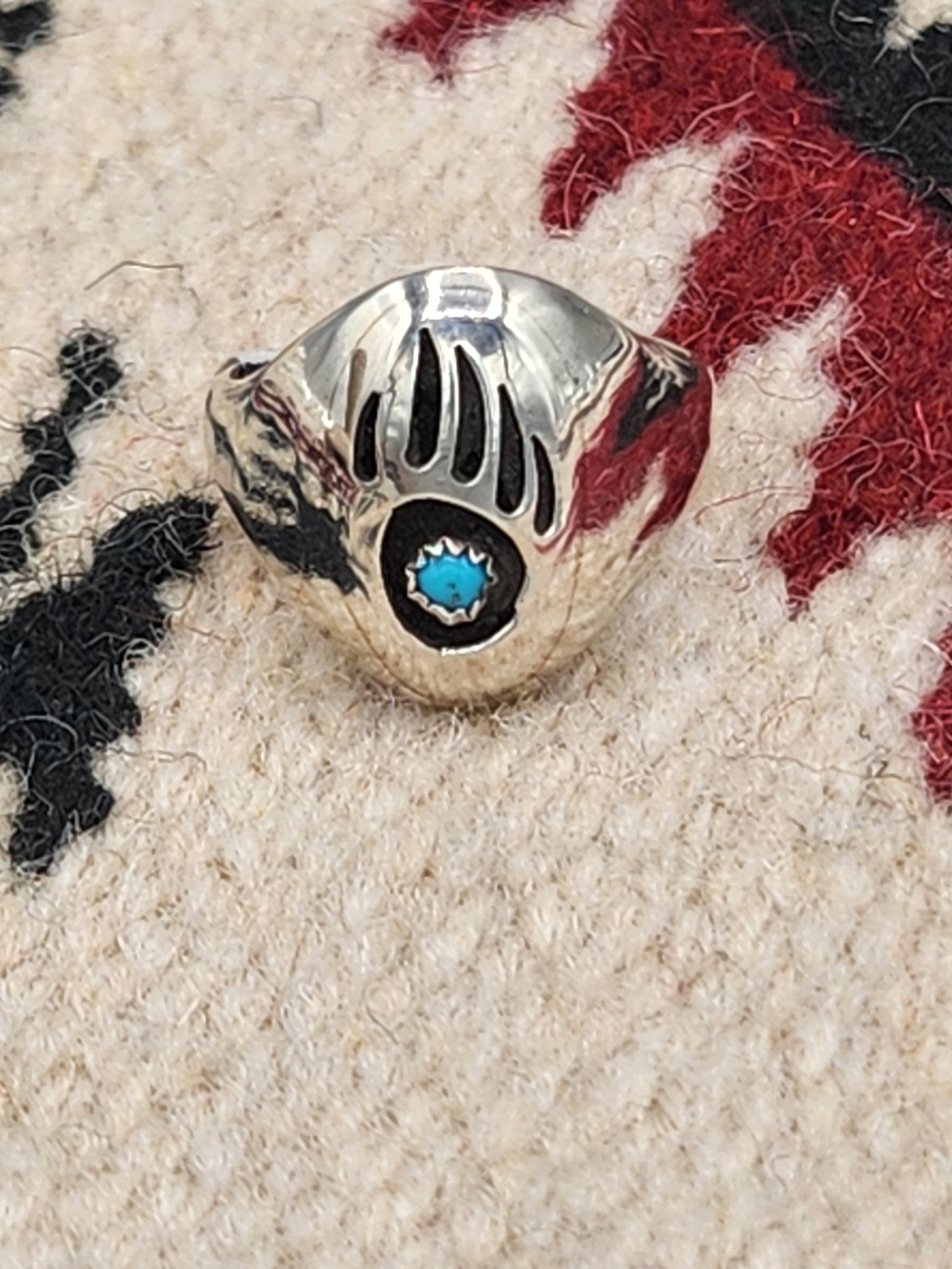 Sterling Silver Turquoise Bear Paw Ring. Size 13.