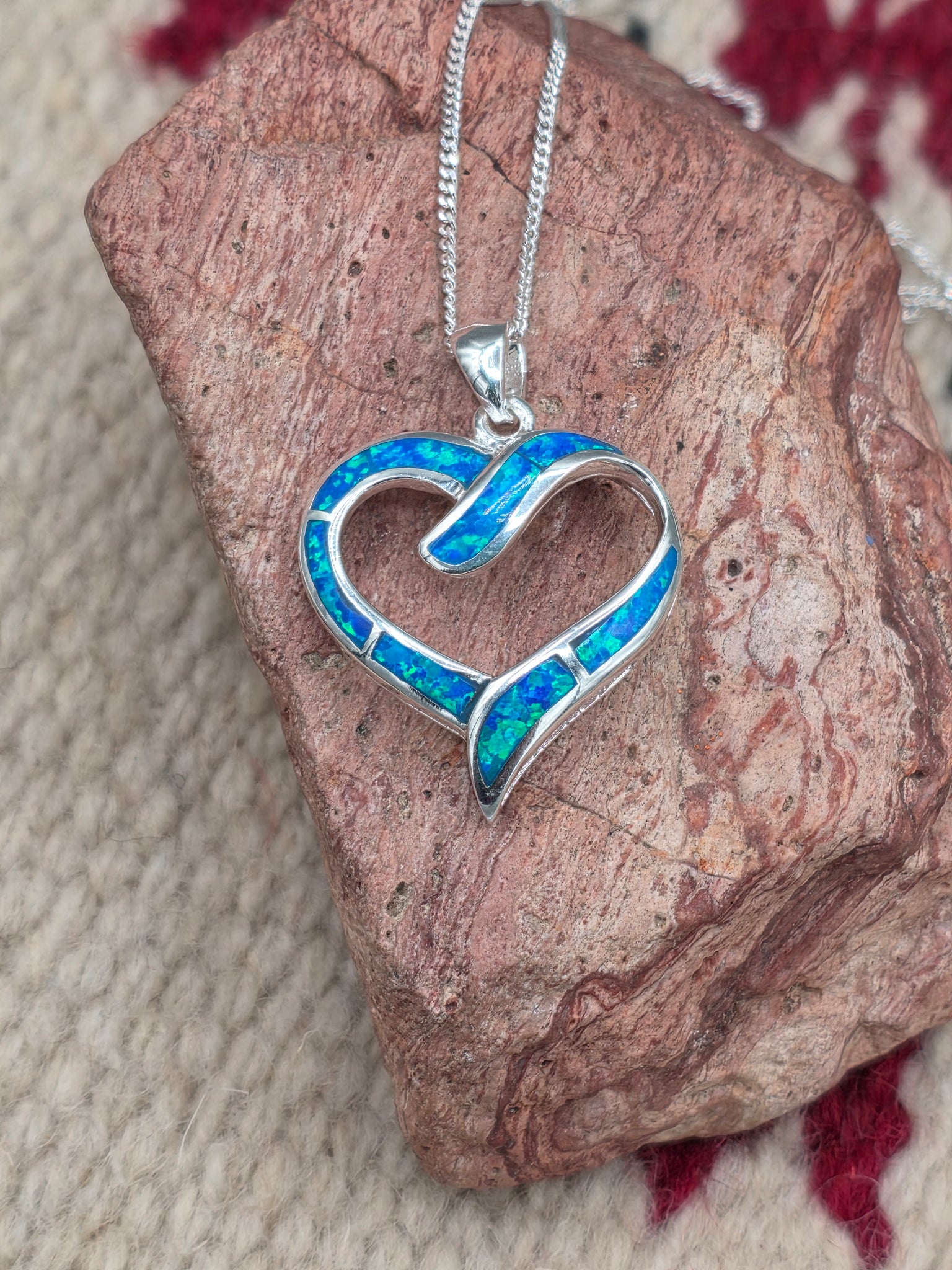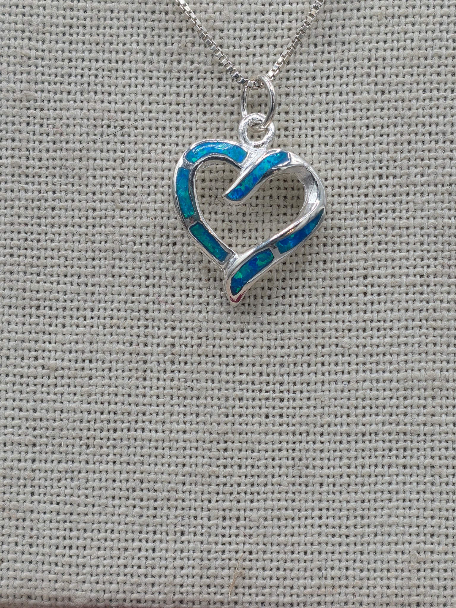 Blue Opal Inlay Heart Necklace set in Sterling Silver. Includes a Sterling Silver #015 Box Chain 18" long