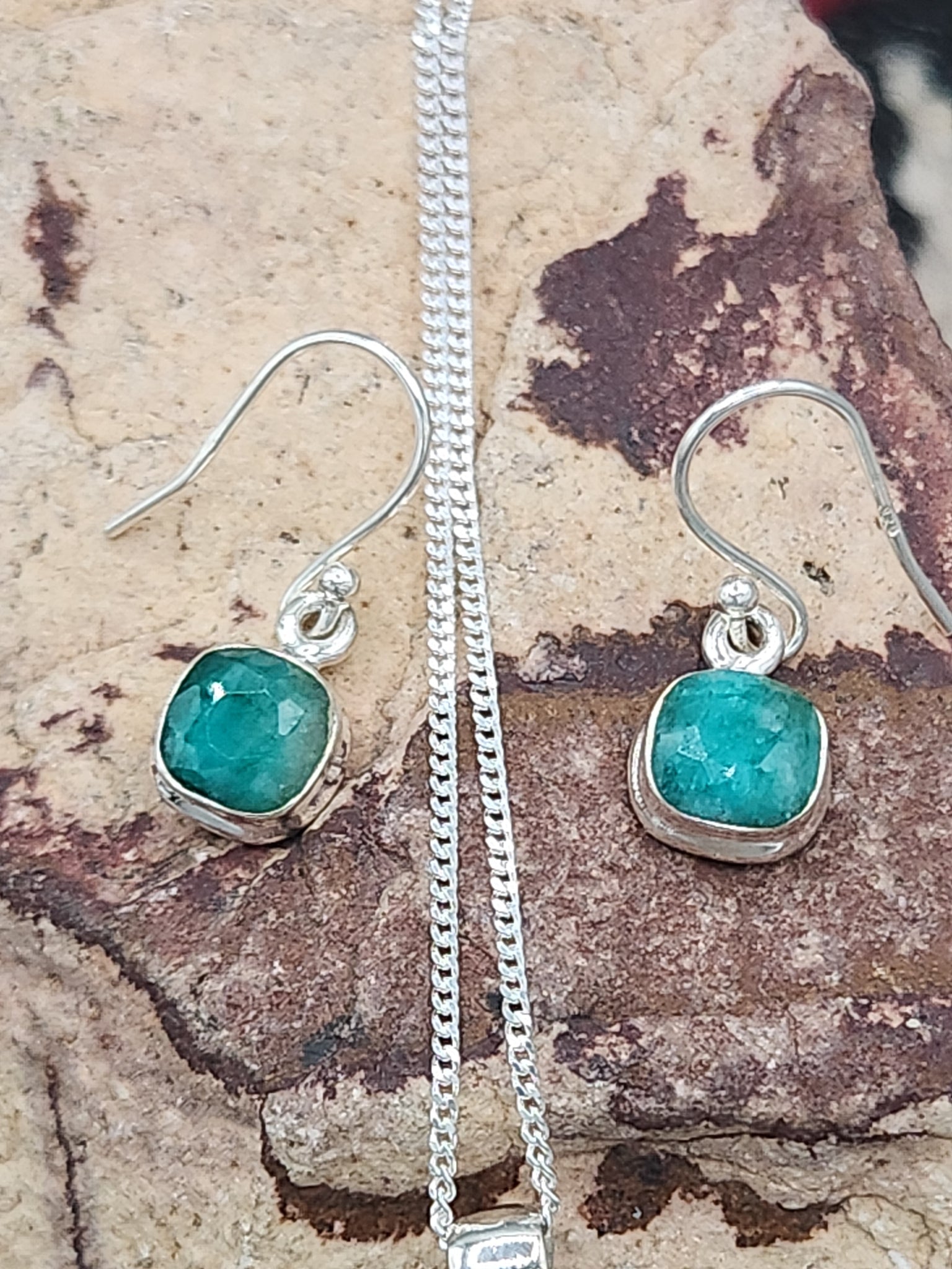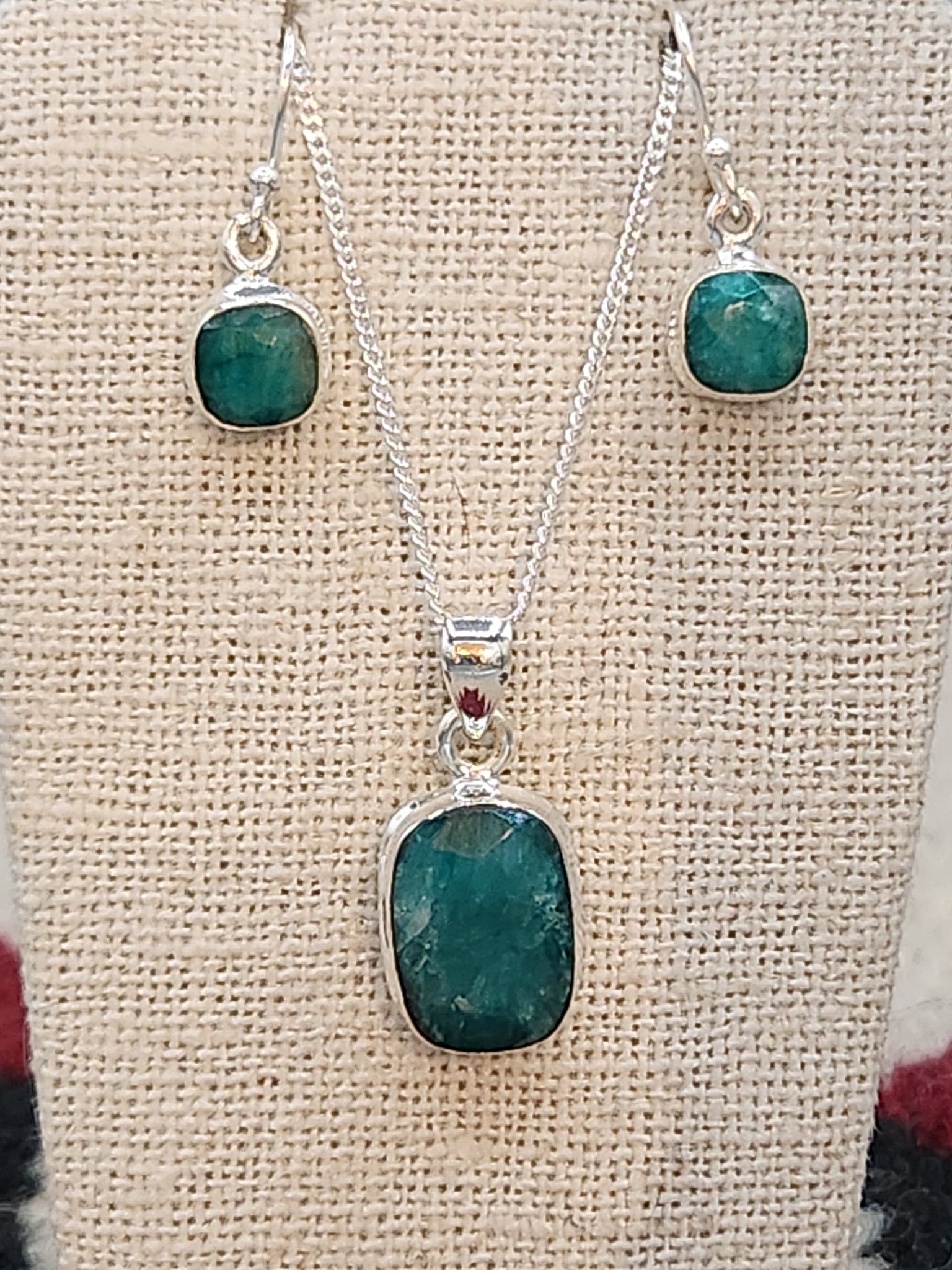 Lovely & Delicate Natural Emerald Necklace & Earrings Set in Sterling Silver.