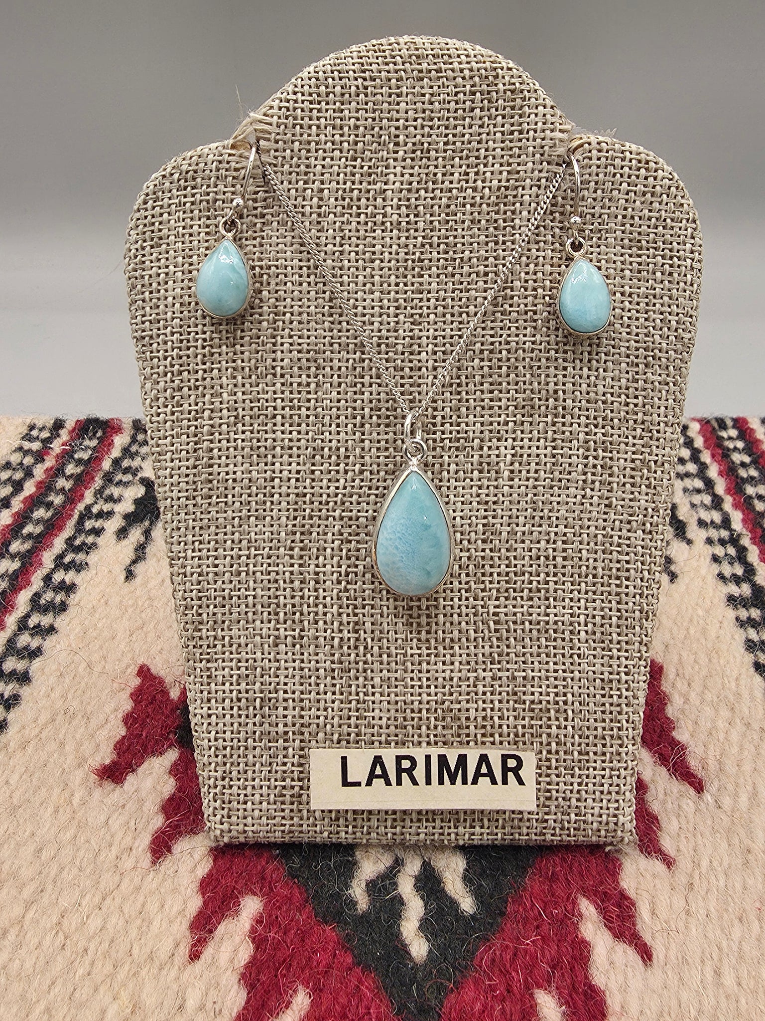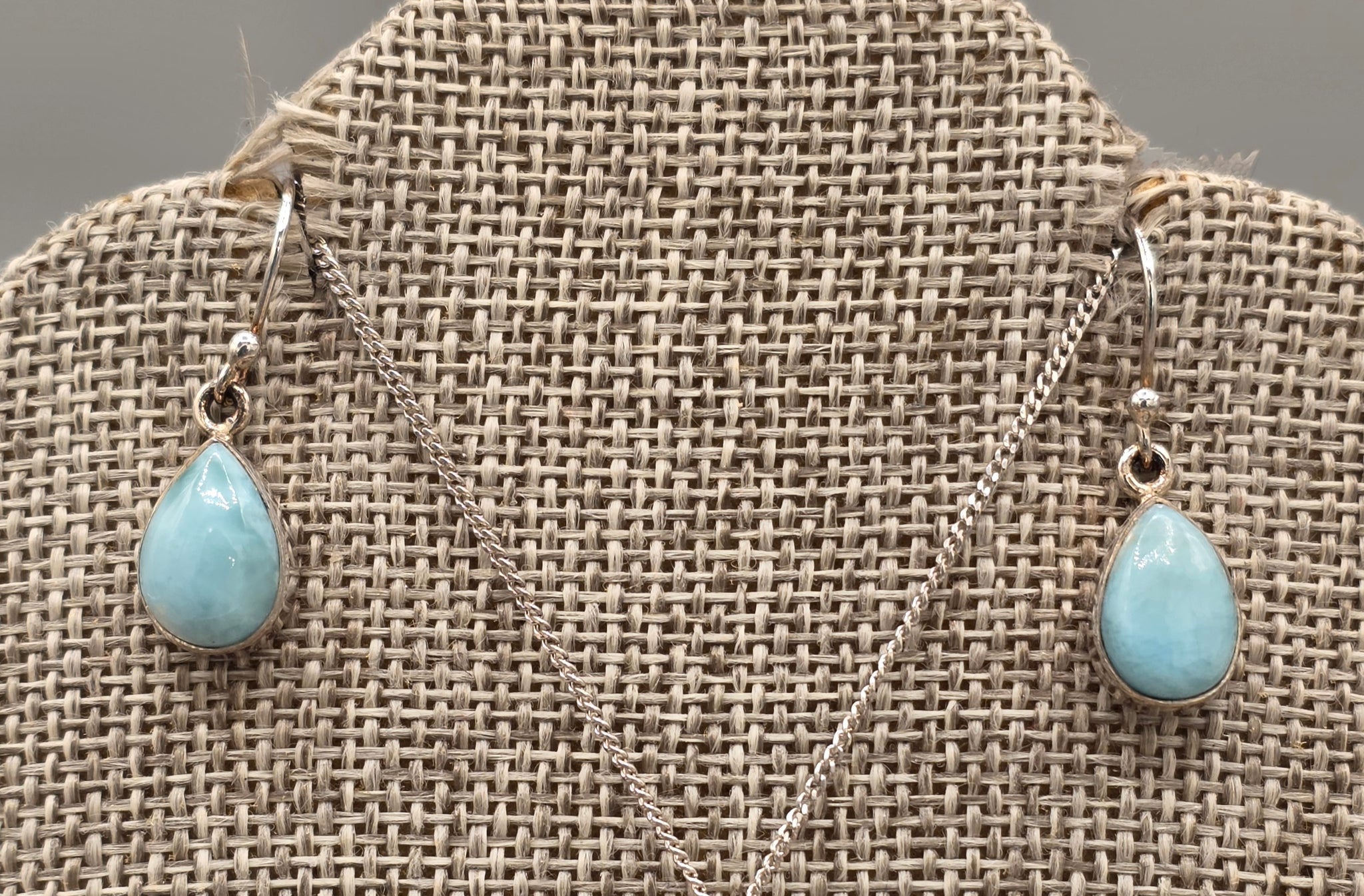 Beautiful Teardrop Sterling Silver Larimar Necklace & Earring Set.