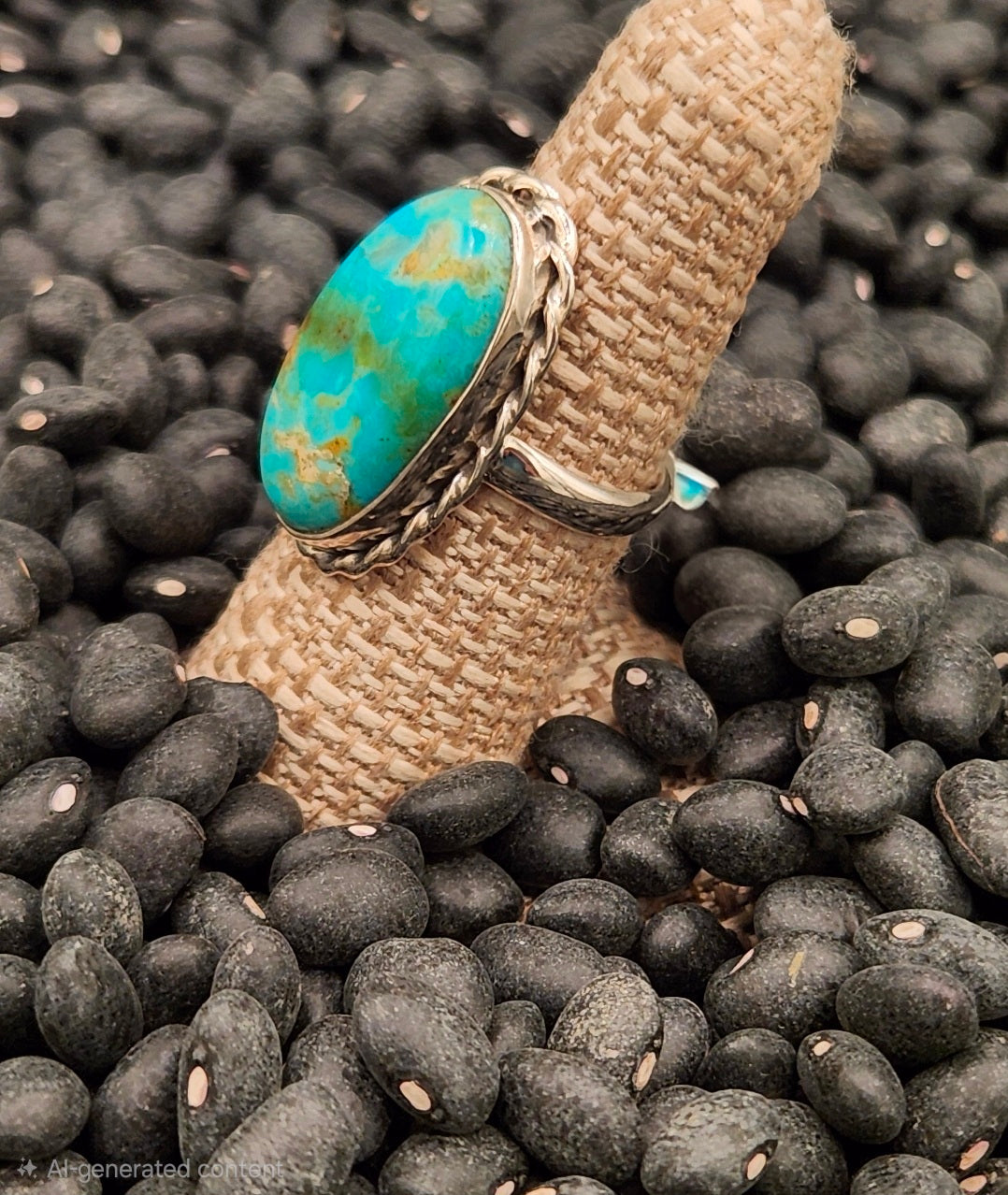 Stunning Large KINGMAN Turquoise Ring. Size 6.5 We can resize up or down 1 full size. Approximately 27 mm long. 17 mm wide. 5 mm high